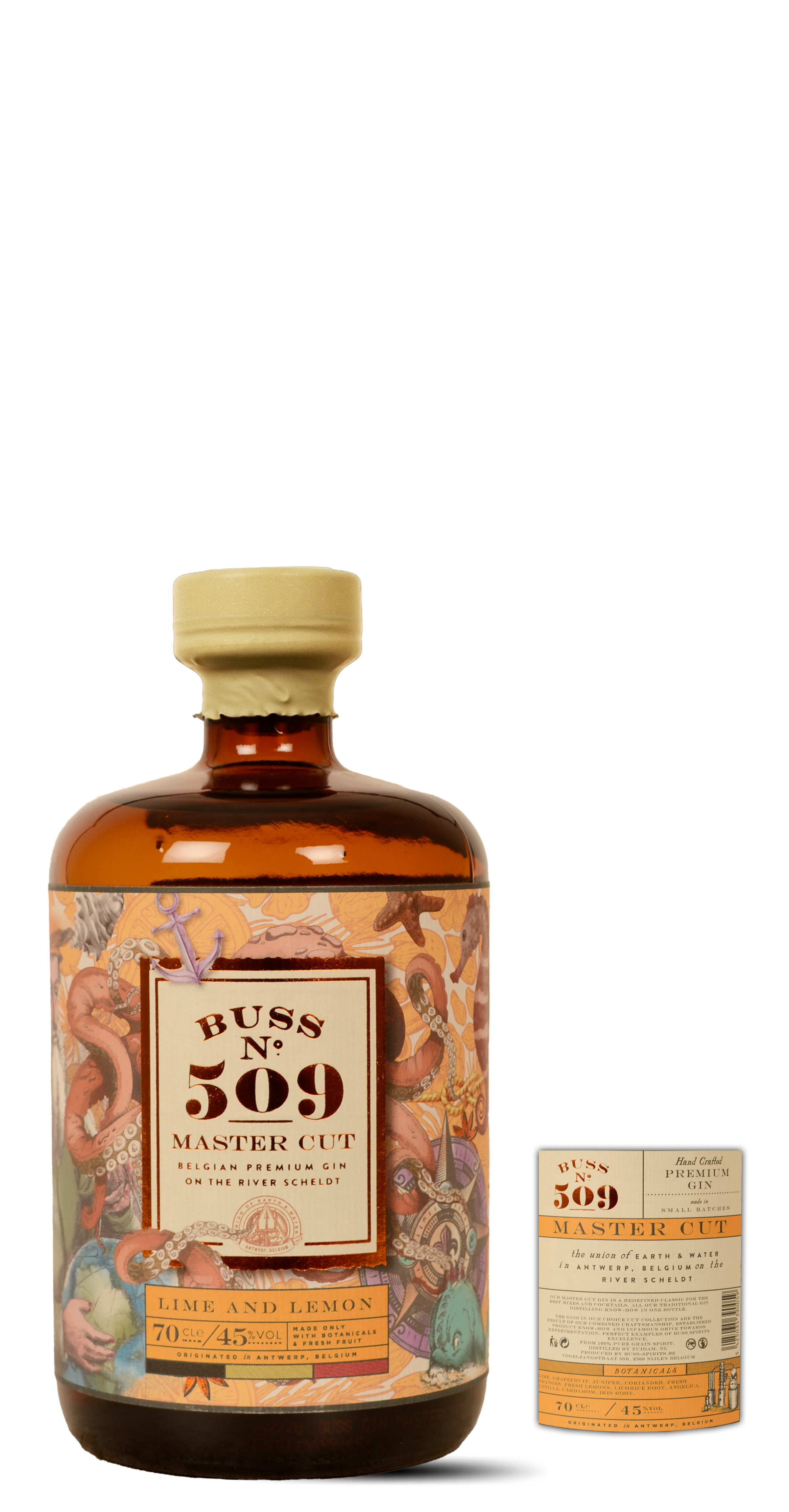 BUSS N ° 509 White Rain is ons derde gin op de markt, gemaakt met een rijke mix van kruiden en specerijen en van Belgische oorsprong, geïnspireerd door passie en kennis. Ontstaan in Antwerpen, hebben we de fijnste kruiden en specerijen gemengd met een premium spirit, om een gin te creëren die prachtig en complex in smaak is. Buss N ° 509 is een ambachtelijk gedistilleerd product. Er zijn geen machines gebruikt, en geen additieven (zoals suiker, kleurstoffen of kunstmatige smaakstoffen) toegevoegd. 50% alcohol, heldere transparantie kleur, 100% puur graan, 100% verse planten, kruiden en fruit: jeneverbes, koriander, zoethout, engelwortel, vanille, kardemom, iris, sinaasappel, citroen, verbena, marjolein.